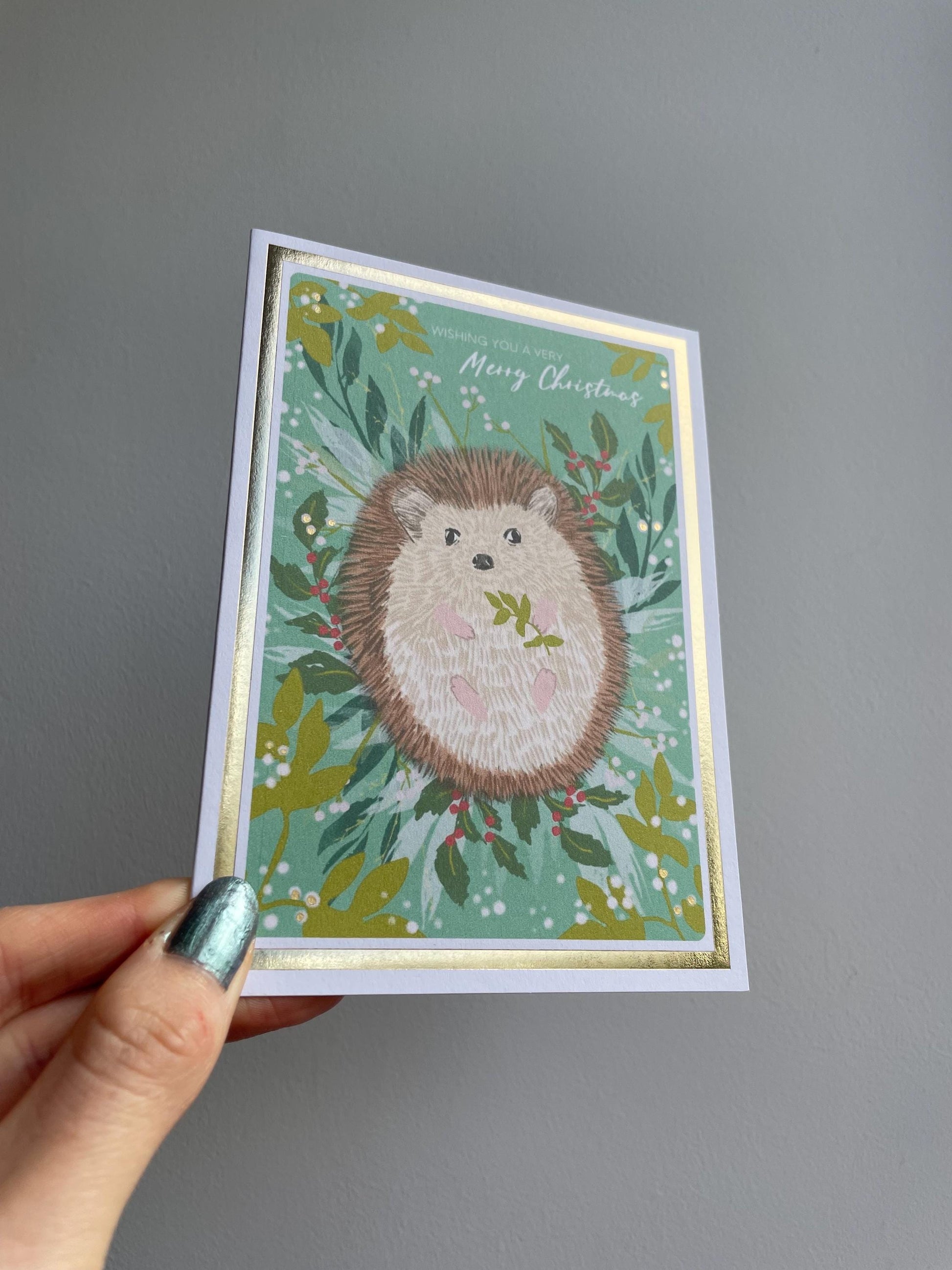 Christmas Hedgehog A6 Cards, set of 3: Handmade, Gold foil, FREE DELIVERY